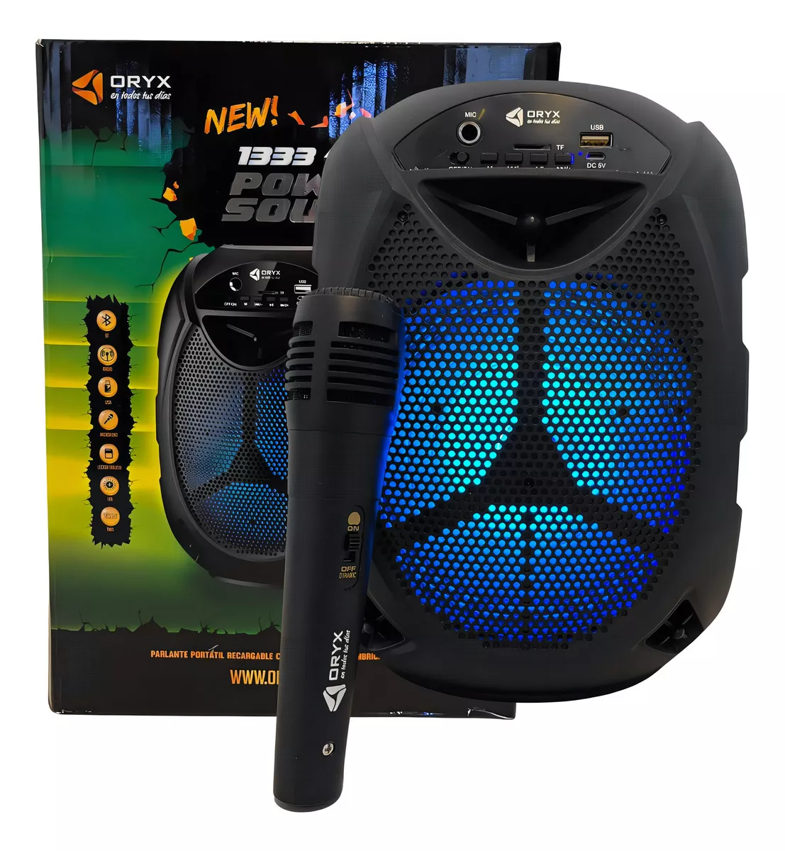 Parlante Portátil Bluetooth Con Micrófono Oryx 1333 Pro Rio Color Negro