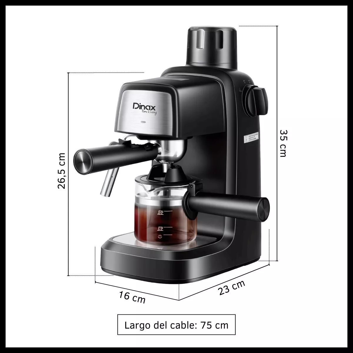 Disfrutá de un café intenso y espumoso en casa con esta cafetera espresso de 3.5 bar de presión. Perfecta para preparar espresso, cappuccino y latte, gracias a su vaporizador que genera una espuma cremosa y deliciosa.